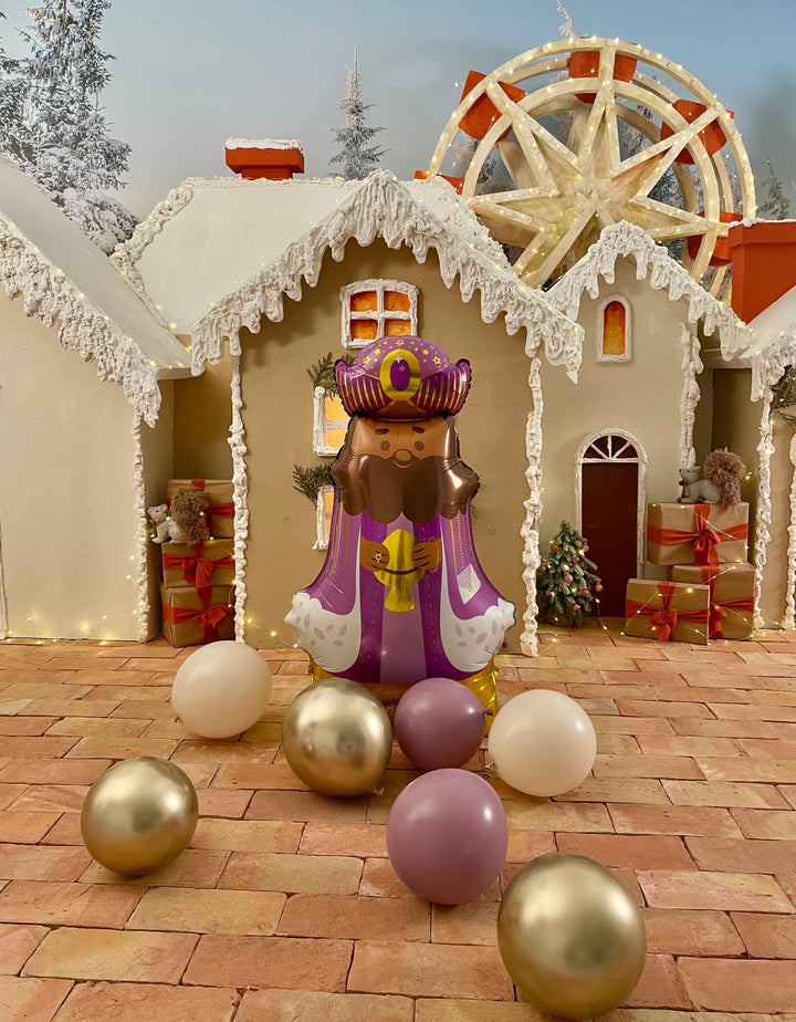 Haz brillar tu decoración con el globo foil del Rey Baltasar, uno de los más queridos por los pequeños de la casa. Con su diseño lleno de color y alegría, será el centro de todas las miradas en la noche más esperada del año.
